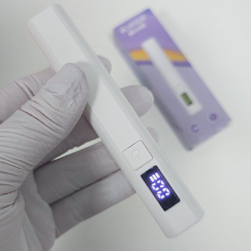 Lámpara linterna portátil MINI 4B es una lámpara súper ligera y bonita. Ideal para el pre secado rápido en técnicas “Press-on” (tips de gel) y “Dual System” (tips superiores), decoraciones, etc.