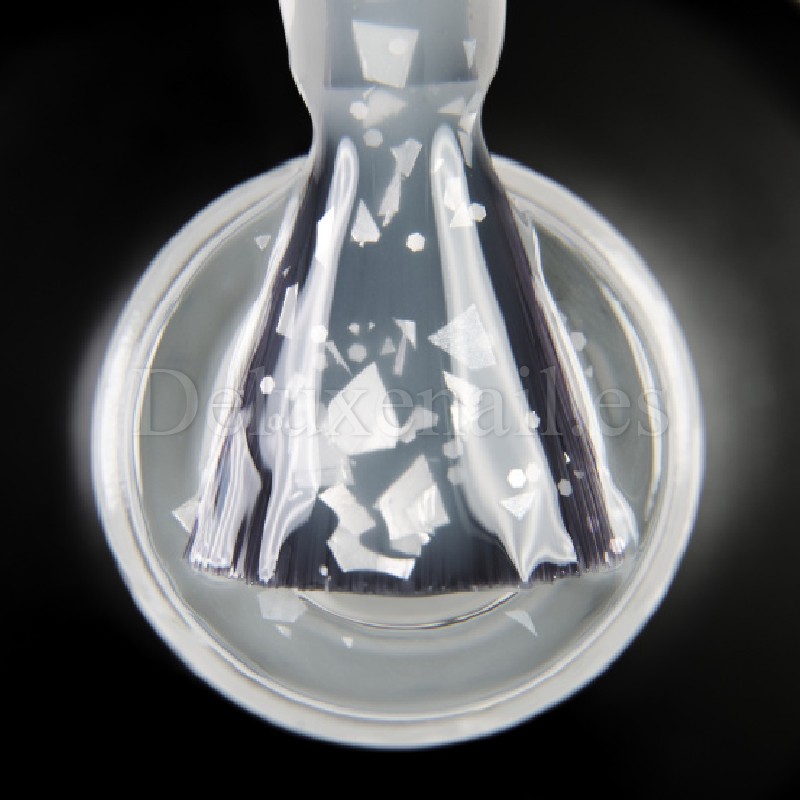 Base Potal de Dark es una base con trozos mixtos de foil plata (efecto concha), perfecta para cualquier tipo de uñas, autonivelante, duradera y resulta ideal para una manicura rápida y bonita.