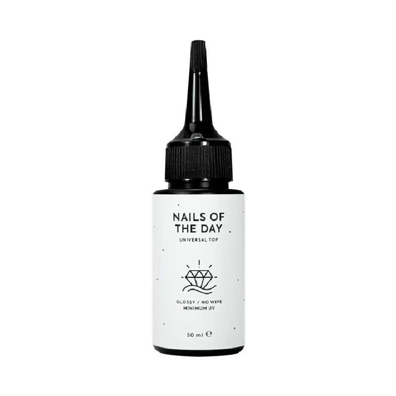 Universal top NAILSOFTHEDAY es un top universal de acabado brillante sin pegajosidad y con un contenido mínimo de UV filtros. Gracias a su fórmula moderna, se nivela perfectamente y cubre la placa ungueal de manera uniforme. Es ideal tanto para tonos claros como oscuros. Previene astillados y arañazos. Universal top mantiene el color intenso de los materiales y un brillo estable hasta por cuatro semanas.