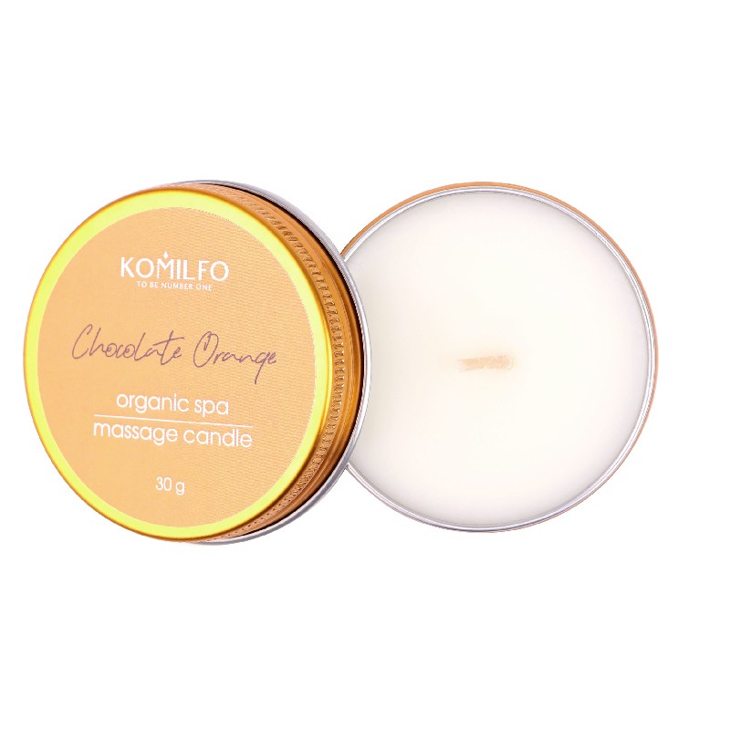 La vela de masaje Chocolate Orange de Komilfo es perfecta para hidratar y cuidar la piel de las manos o de los pies.